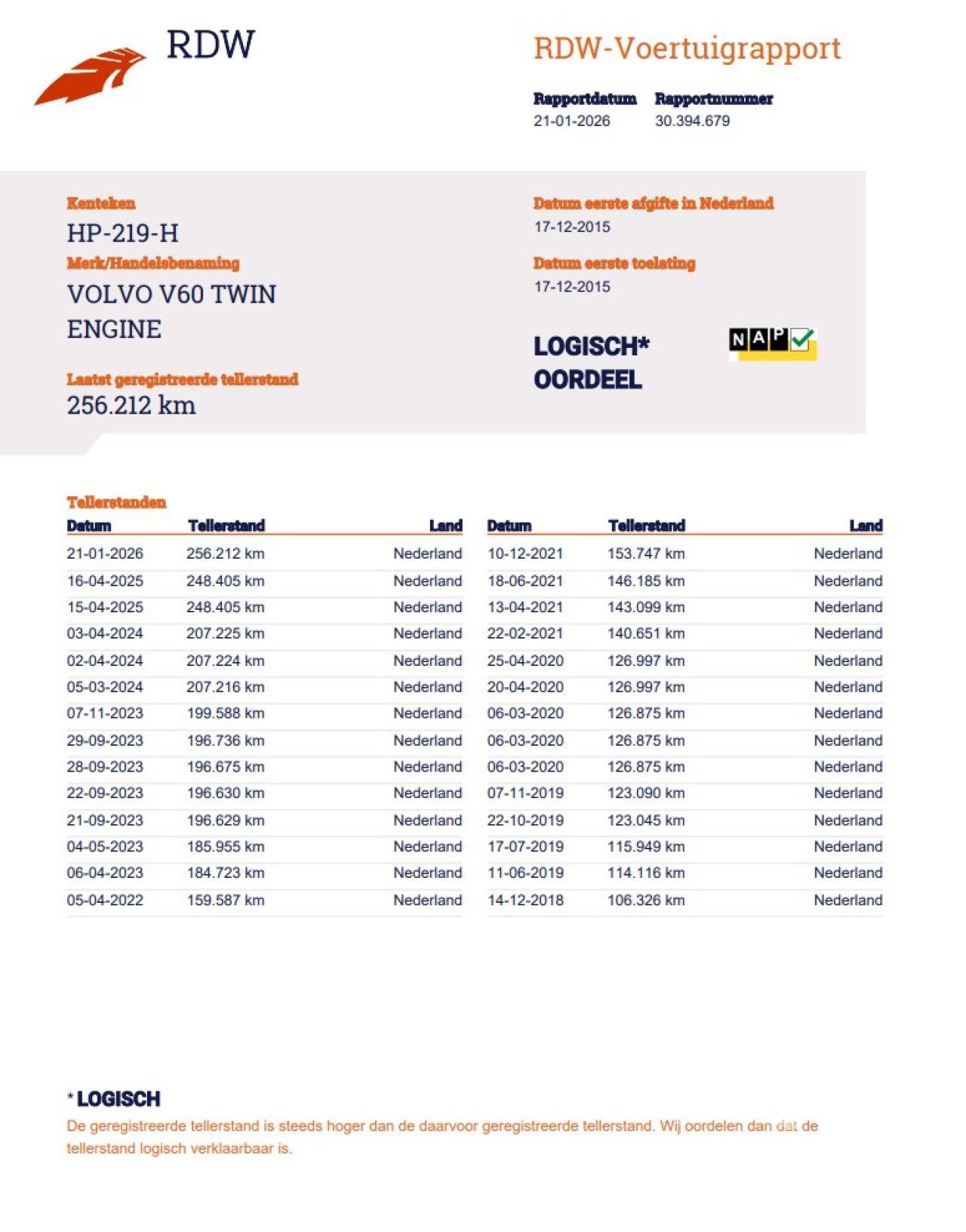 Verificación del kilometraje (NAP)
