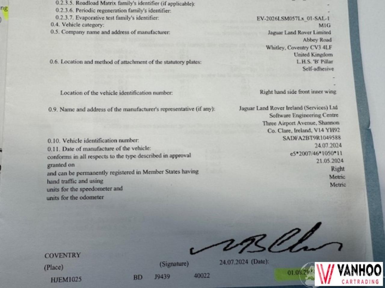 Número de chasis: SADFA2BT9R104****