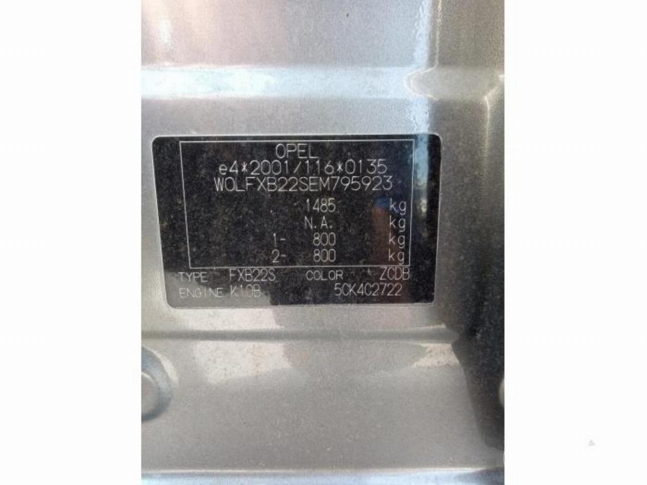 Numero di telaio: W0LFXB22SEM7*****