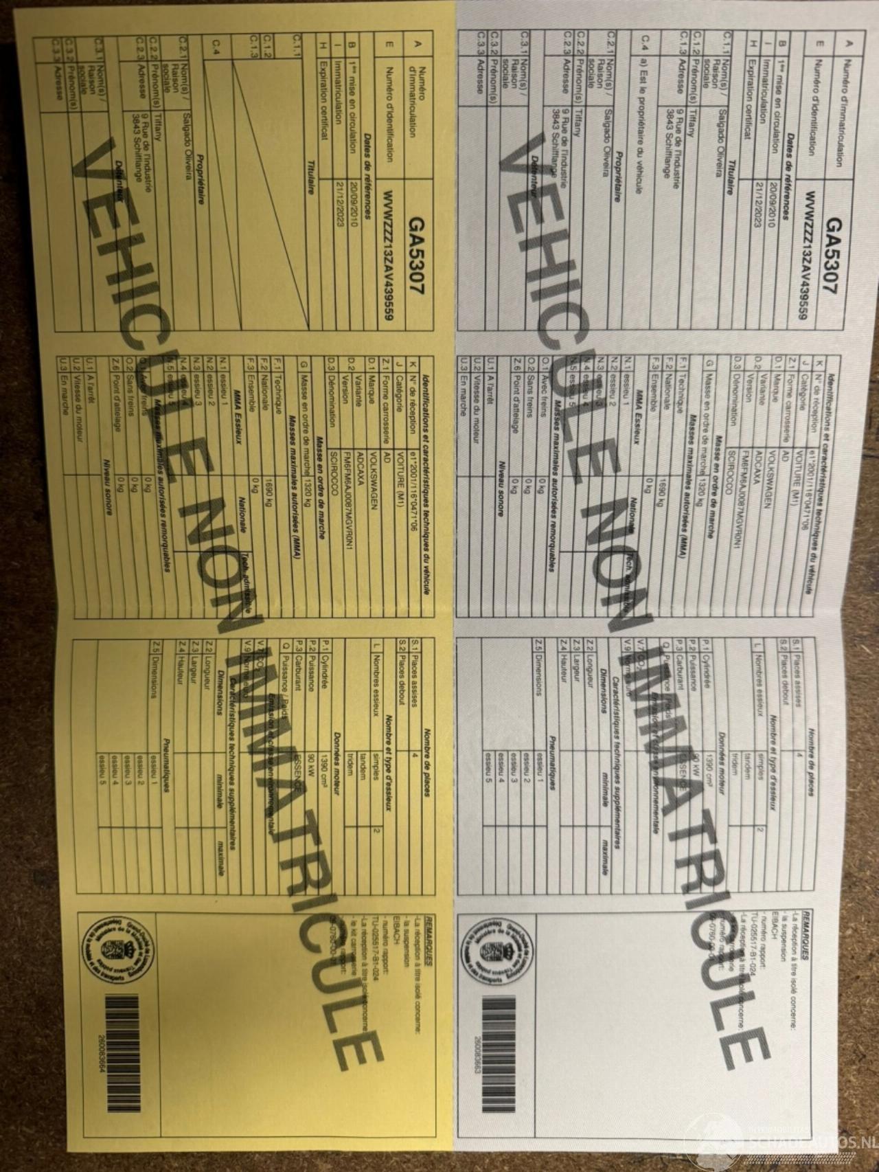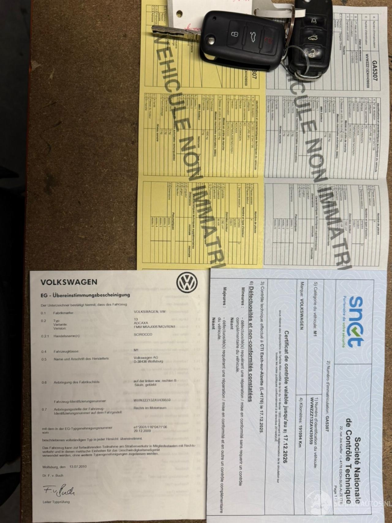 schade VOLKSWAGEN VOLKSWAGEN SCIROCCO € 2.900